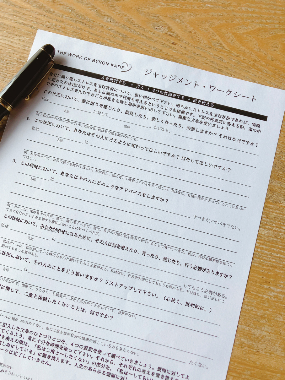 ワークは、基本的に「4つの質問」と「置き換え」という
